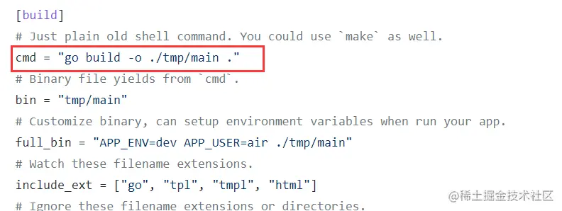 上述文件是李文周老师博客提供了一些汉化注释,大体还是github官方的air_example.toml