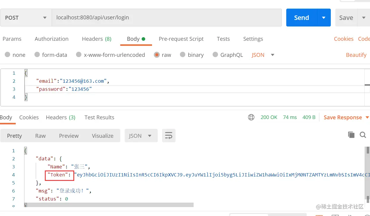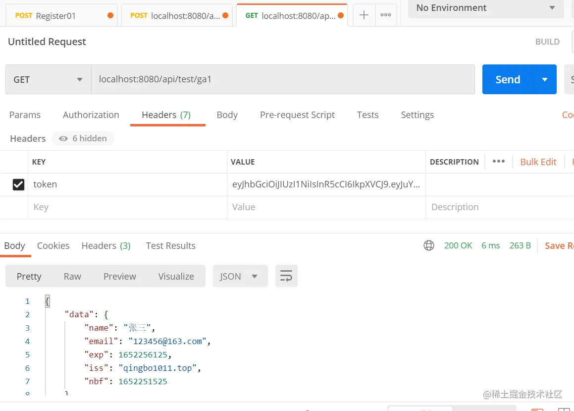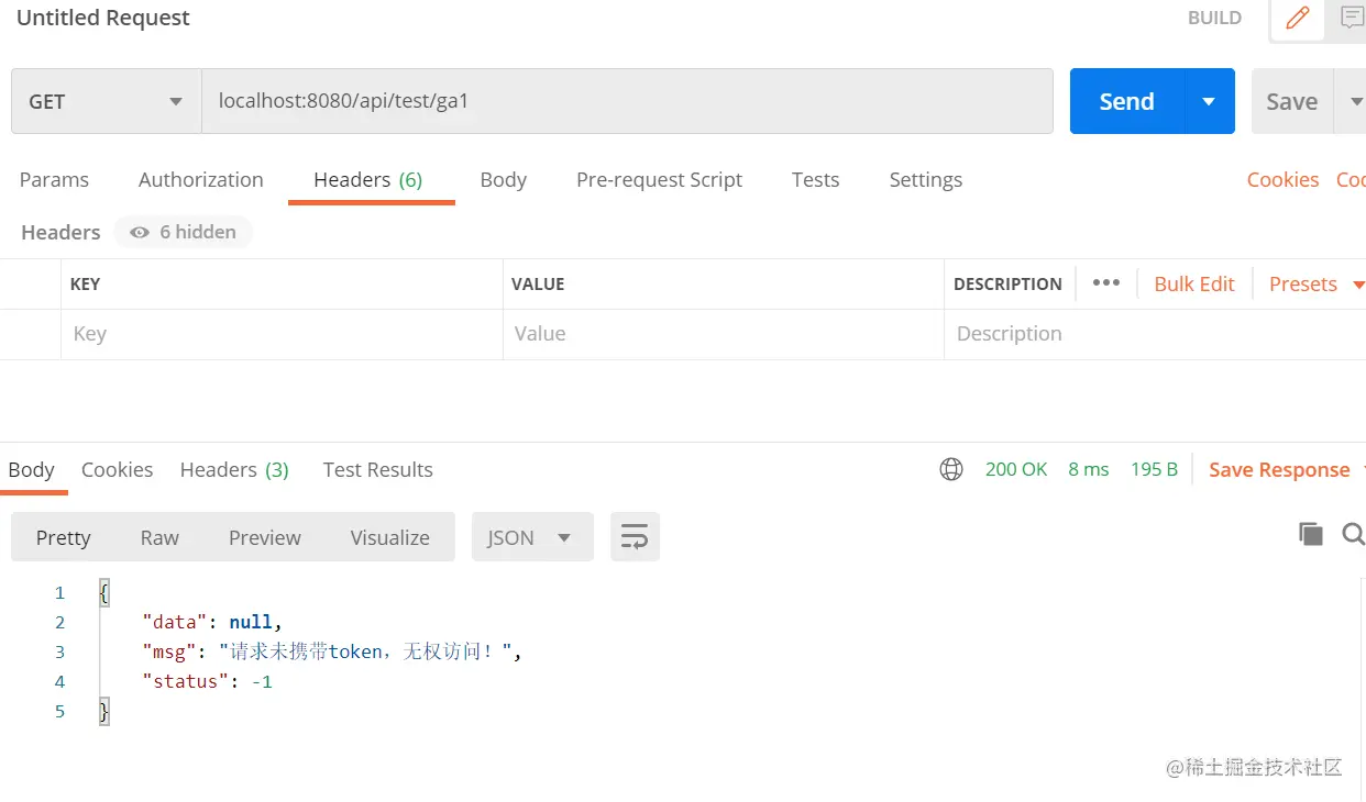 先不在header中携带token,看看能否跑通localhost:8080/api/test/ga1