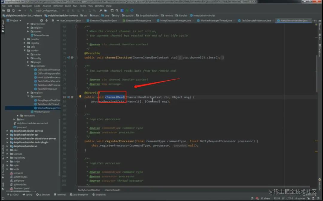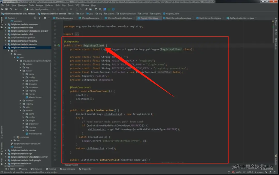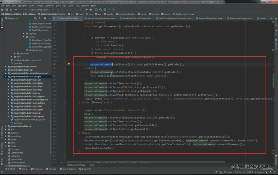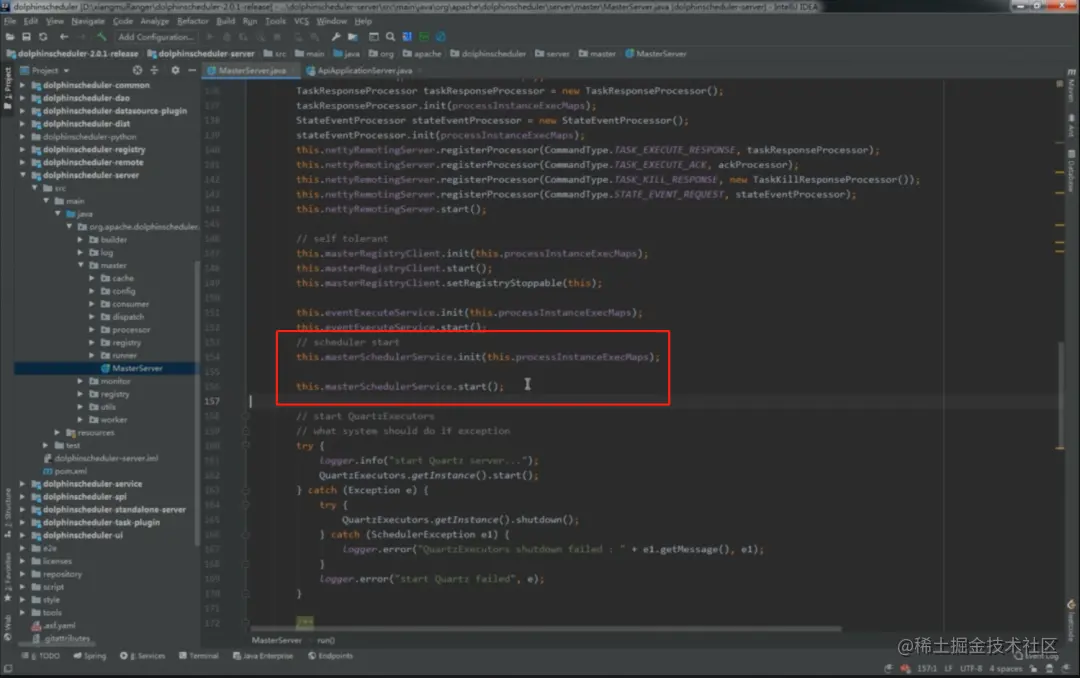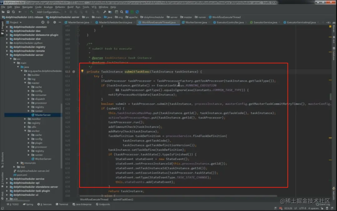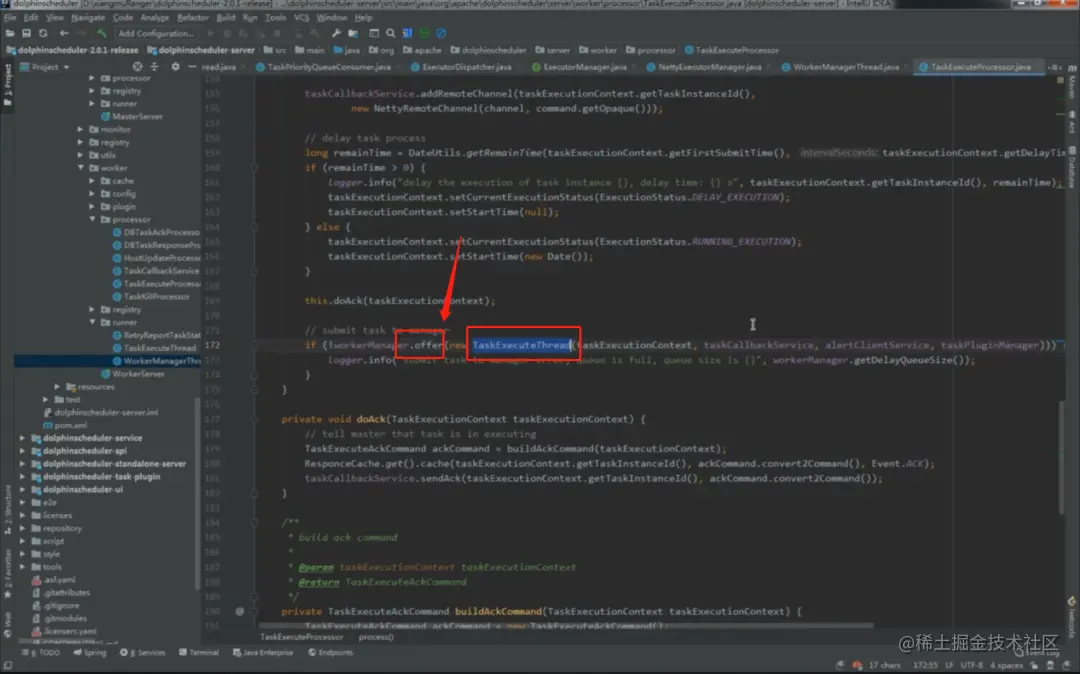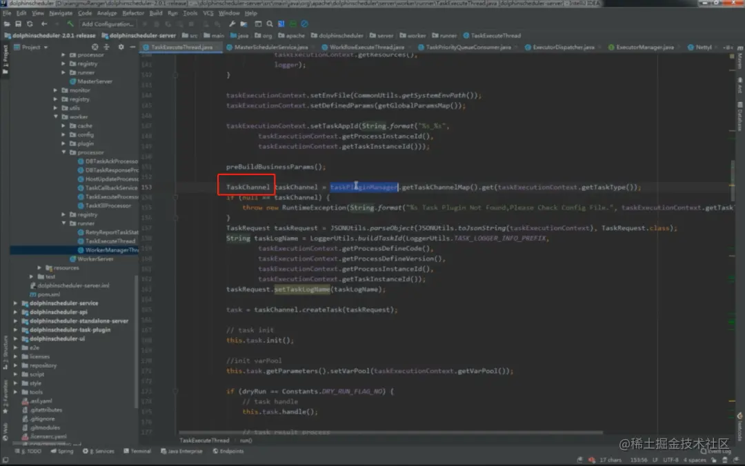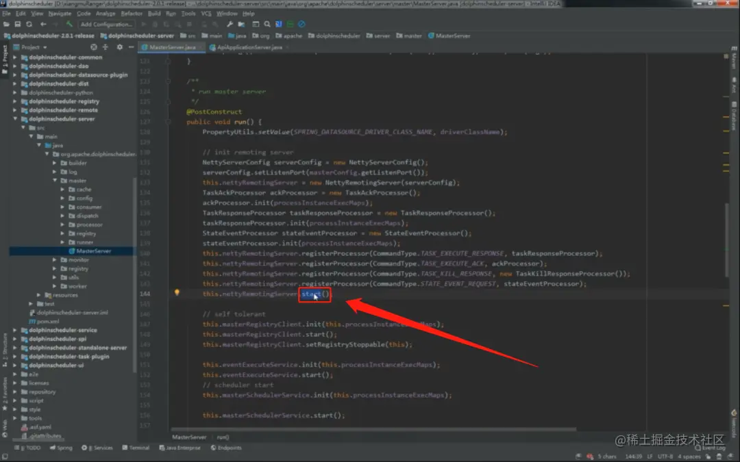 找到WorkServer.java中的main方法,进程代码也位于DolphinScheduler-Server模块下面