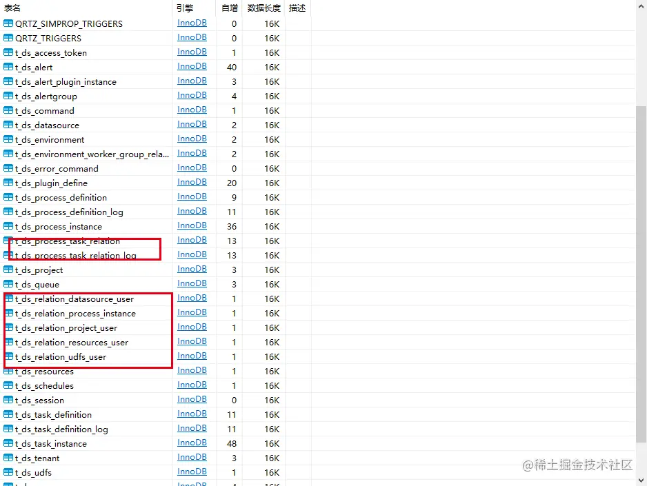 还有一个在调研的过程当中,这个表的命名还有优化空间,表的命名格式有一些不同,比如说一些关系表,它后面加了 relation,然后有一些是加在前面的。