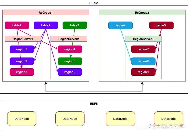 - HBase底层的HDFS还是公用一份,如果HDFS出现问题,可能会影响一个甚至多个的RsGroup