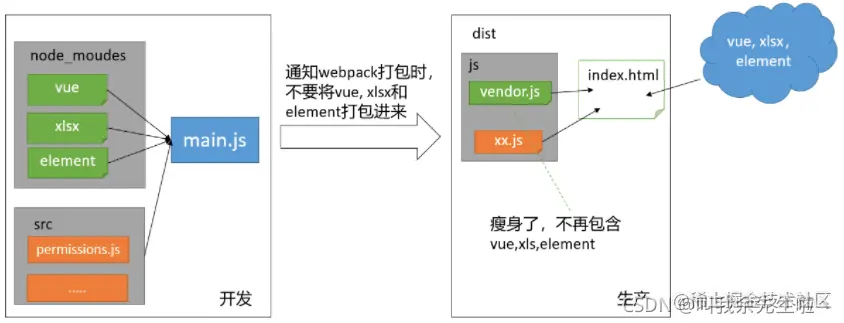 例如:让 webpack 不打包 vue xlsx 和 element