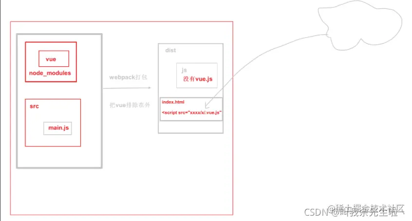 注意,在开发项目时,文件资源还是可以从本地node_modules中取出,而只有项目上线了,才需要去使用外部资源。此时我们可以使用环境变量来进行区分。具体如下: