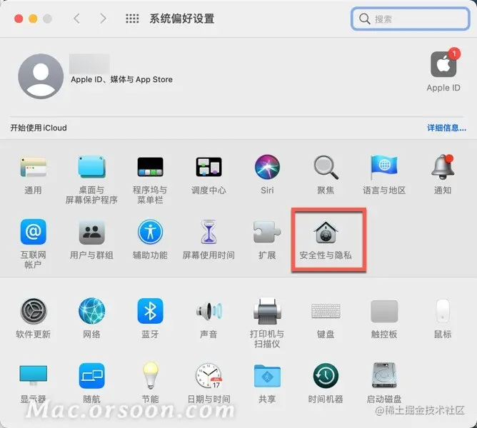步骤1:首先打开系统偏好设置页面,找到安全性与隐私设置。