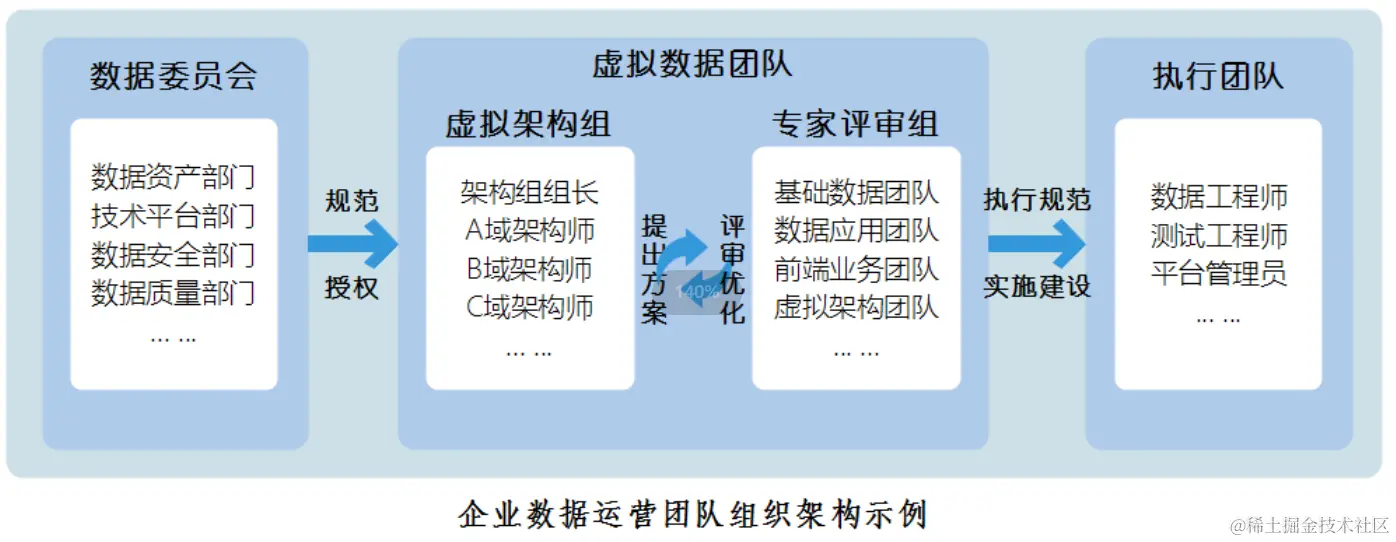虚拟架构组主要负责提出解决方案,一般由来自各业务部门数据团队核心成员、熟悉数据建模理论、具有丰富开发经验的人来担任,例如:架构师