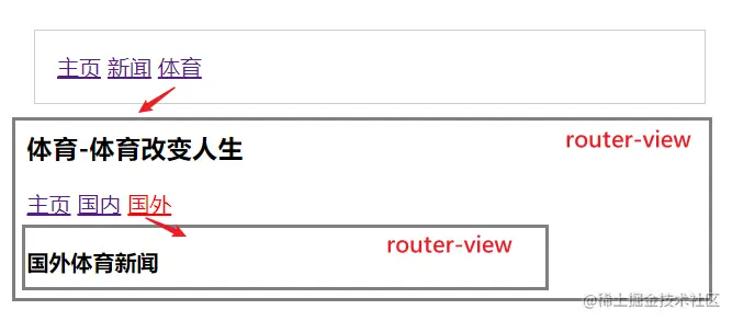 原理:router-view中再次包含router-view。