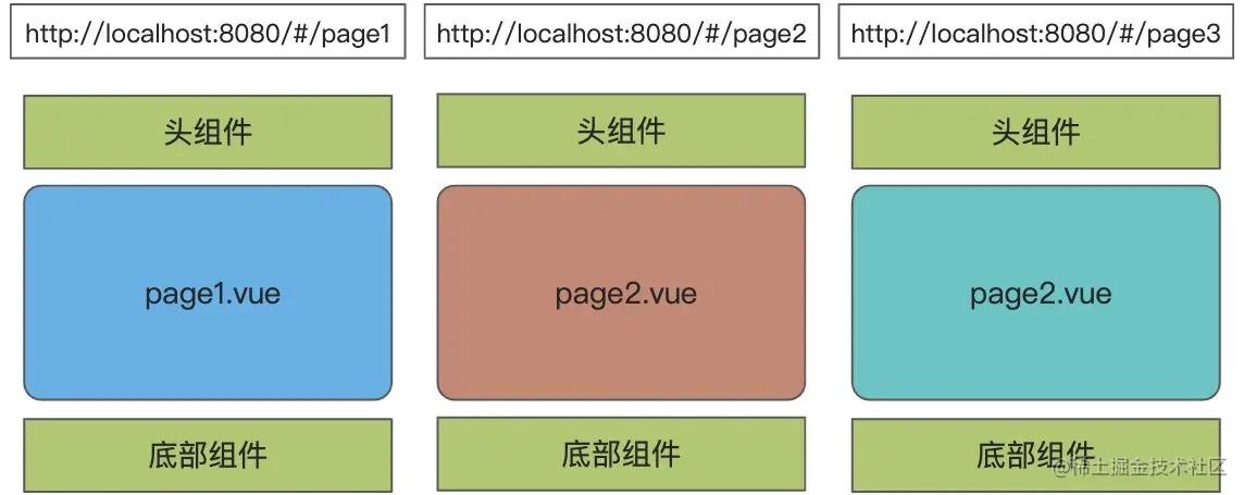 | 页面组成 | 一个html文件多个组件组成 | 多个html文件 |