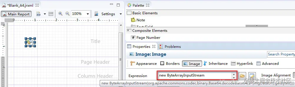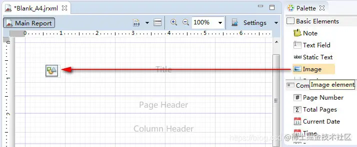- 选择Image标签拖拽到Blank_A4.jrxml的自定义位置