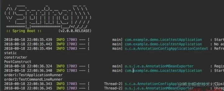 因此,加载顺序为static>constructer>@PostConstruct>CommandLineRunner和ApplicationRunner.