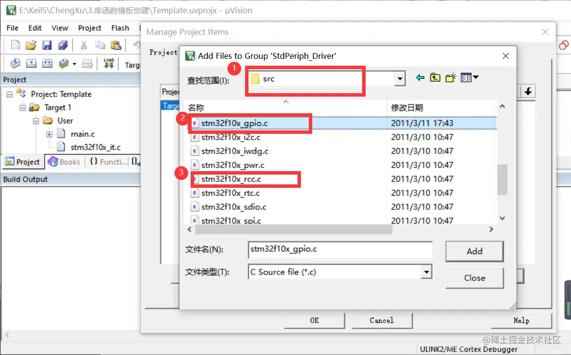 在StdPeriph_Driver目录下添加外设驱动文件,添加最常用的两个外设驱动文件
