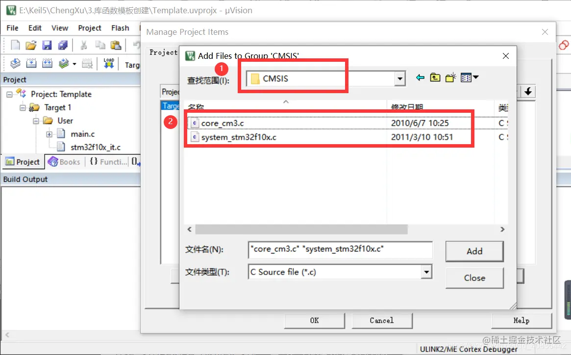 在CMSIS目录下添加文件