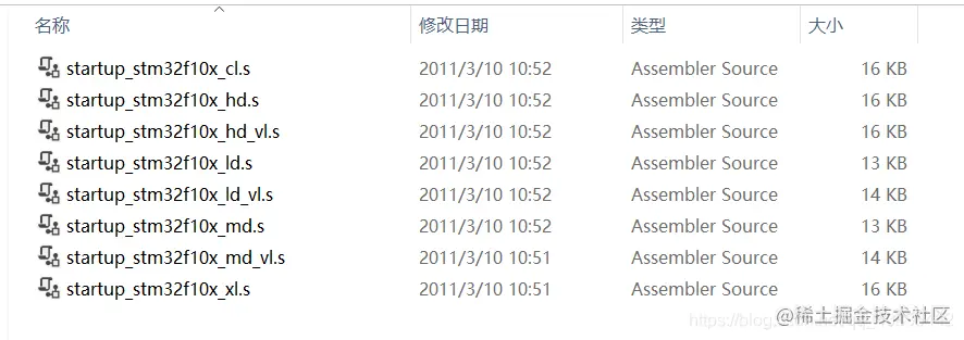 STM32最新固件库v3.5\Libraries\CMSIS\CM3\DeviceSupport\ST\STM32F10x存放着系统初始化的一些文件,不需要动,其中的startup文件夹包含了启动文件,启动文件夹包含的几个文件夹是根据编译器区分的,Keil5编译器用的是arm文件夹中的文件