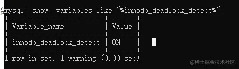 该命令表示如果开启死锁检测机制,那么出现死锁,会随机自动释放一个在死锁的事务。