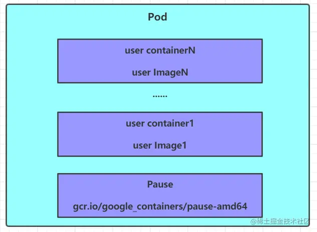 - 每启动一个pod,同时也会启动一个伴随容器(pause容器),pause伴随着pod的启动而启动,pod的删除而删除。