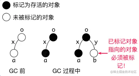 - Mutator: 业务线程,分配新对象,修改对象指向关系