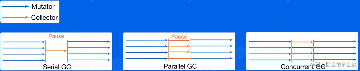 - Collector: GC线程,找到存活对象,回收死亡对象的内存空间