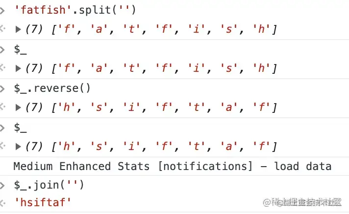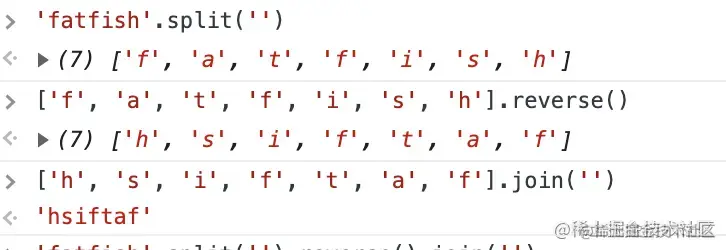 ['f', 'a', 't', 'f', 'i', 's', 'h'].reverse() // ['h', 's', 'i', 'f', 't', 'a', 'f']