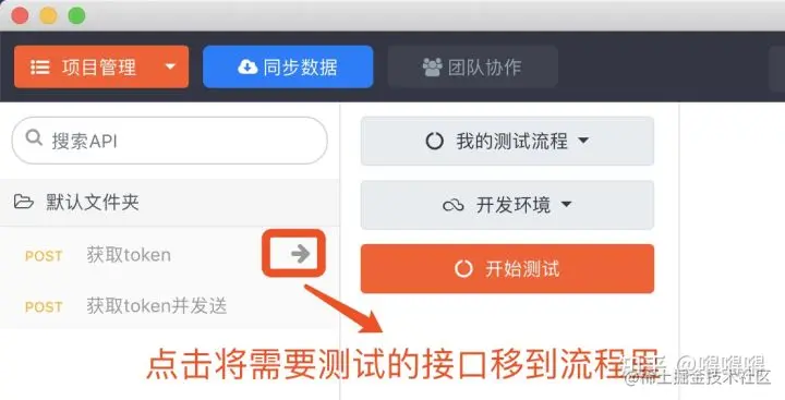点击ApiPost顶部的【流程测试】,然后创建一个流程