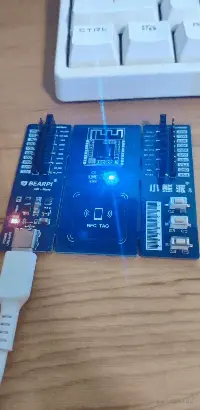 代码编译烧录代码后,按下开发板的RESET按键,开发板的LED灯开始闪烁:
