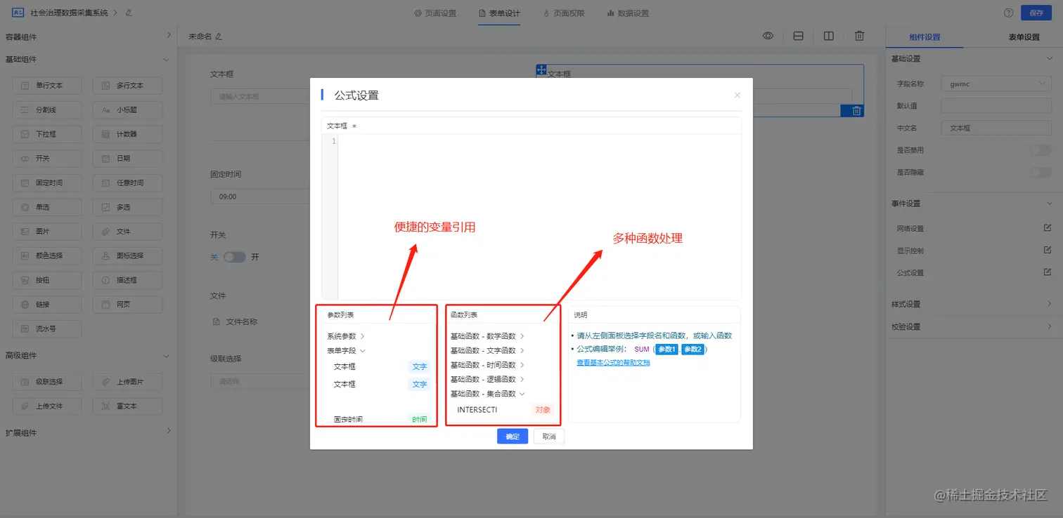 4、逻辑引擎中参数添加函数公式功能,实现参数的动态控制。