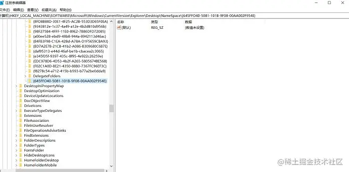 步骤4.我们将刚刚新建好的项重命名为{645FFO40——5081——101B——9F08——00AA002F954E}。