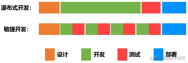 敏捷开发并没有抛弃瀑布开发的工作环节,而是在经常发生变更的场景下,进行灵活的工作调整,来实现在变化中迭代的效果。