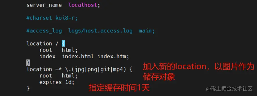 - 当Nginx将网页数据返回给客户端后,可设置缓存的时间,以方便在日后进行相同内容的请求时直接返回,避免重复请求,加快了访问速度,一般针对静态网页设置,对动态网页不设置缓存时间。
