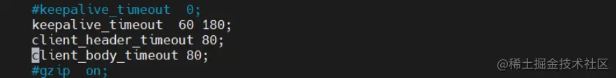 指定KeepAlive的超时时间(timeout)。指定每个TCP连接最多可以保持多长时间,服务器将会在这个时间后关闭连接。 Nginx的默认值是65秒,有些浏览器最多只保持 60 秒,所以可以设定为 60 秒。若将它设置为0,就禁止了keepalive 连接。
