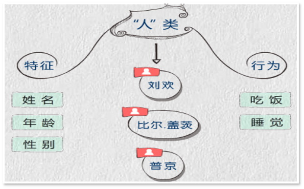 类是对象的类型,具有相同属性和行为事物的统称。类是抽象的,在使用的时候通常会找到这个类的一个具体存在。