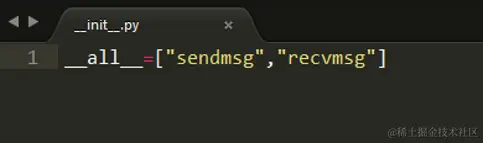 - 目录中只有包含了叫做__init __.py的文件,才能被程序认作是包,模块才能被导入成功。现在我们就在msg文件夹下创建一个 __init __.py文件,并且一定要在文件中写入 __all __