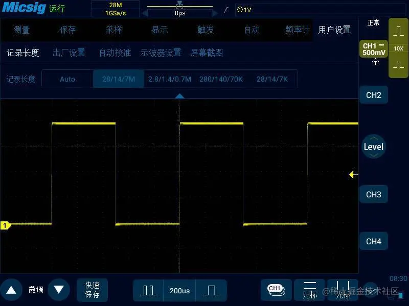采样率 – 采样率决定了示波器能采集数据点的能力,信号采集的数据点越多,信号就越接近真实的状态,也就越不容易失真。