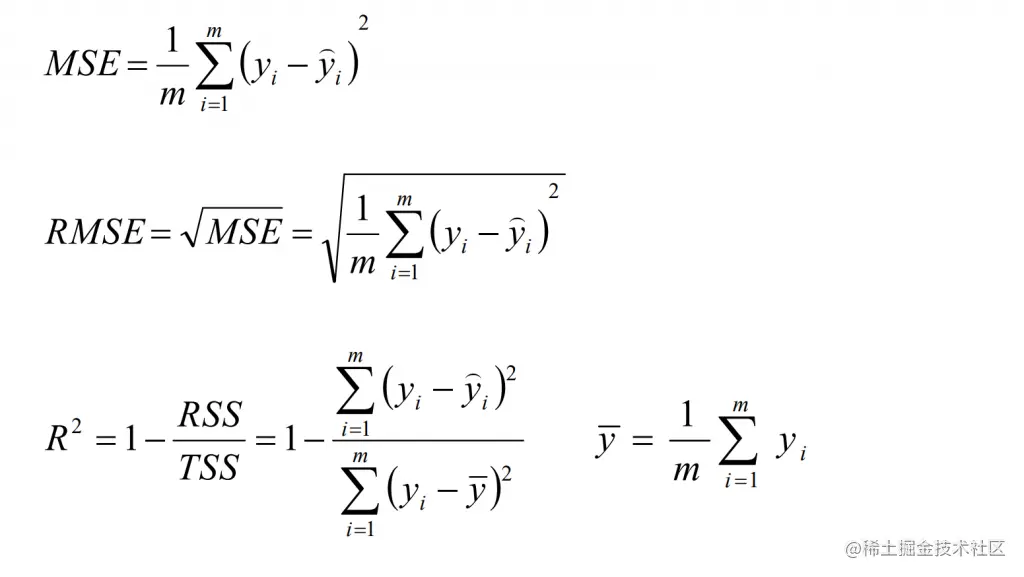 - RSS:残差平方和RSS(Residual Sum of Squares),表示预测值和样本值之间的差异情况,是MSE的m倍