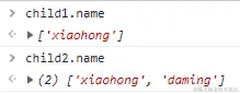通过child2向name添加元素:child2.name.push("daming");