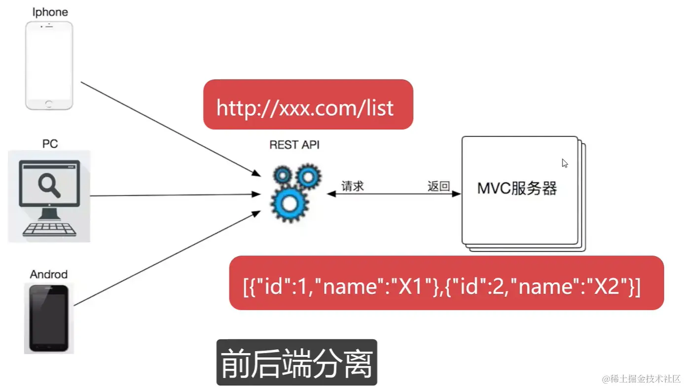 - 只返回数据(JSON|XML),不包含任何展现