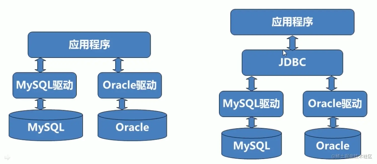 - JDBC全程为: java DataBase Connectivity(java数据库连接)