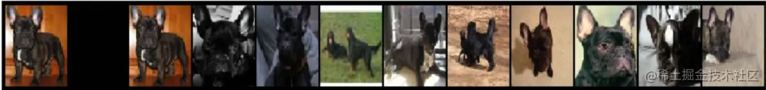 构建查询用的 DocumentArray,调用 match 函数在先前步骤中创建的 DocumentArray 中搜索最相似的图片。搜索结果保存在 matches 变量中,使用 plot_matches_sprites 函数进行可视化。