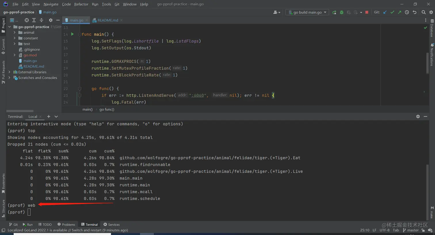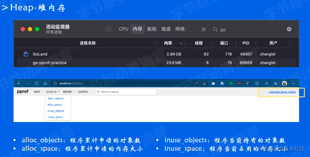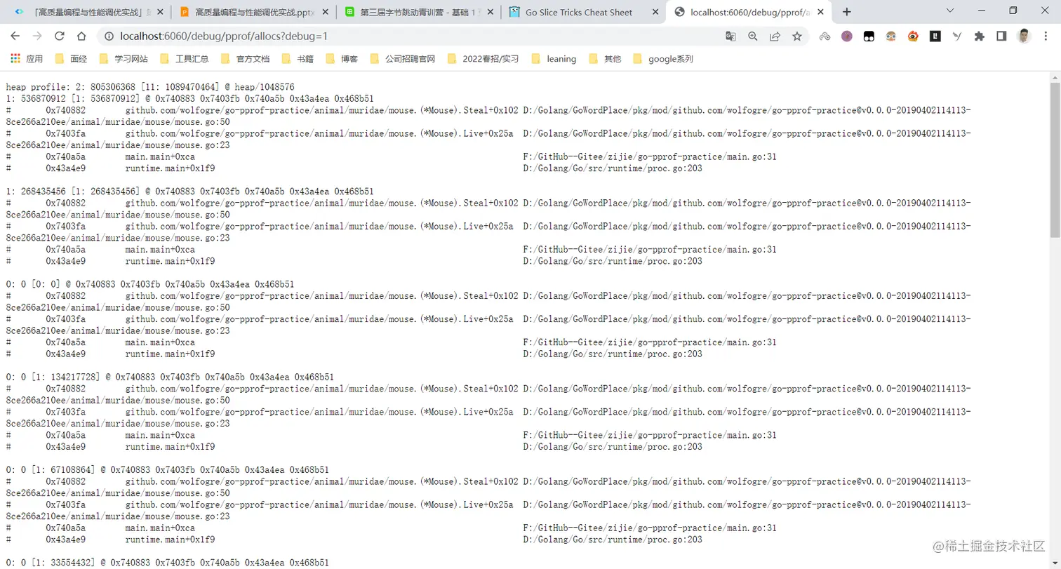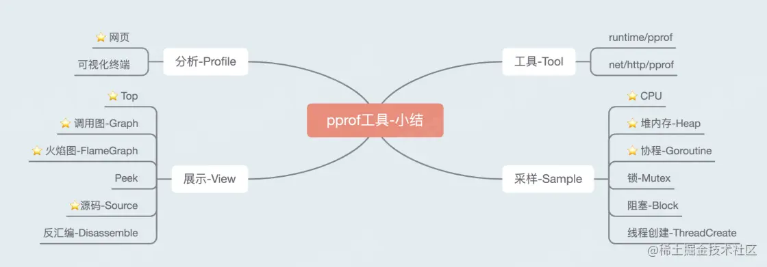 pprof工具,可以通过分析实际的程序熟悉相关功能,理解基本原理,后续能够更好地解决性能问题 - 在真正的服务性能调优流程中,链路会很长,重点是要保证正确性,不影响功能,同时定位主要问题