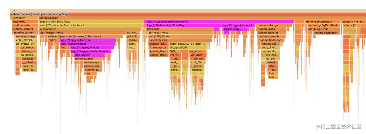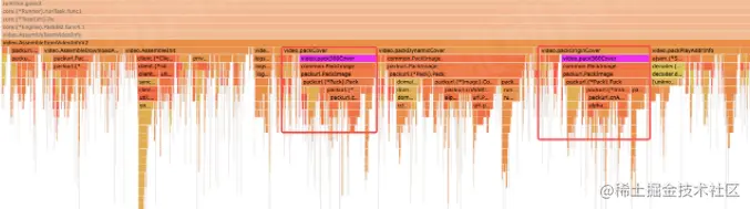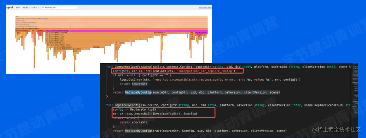 比如这里通过火焰图看出json的解析部分占用了较多的CPU资源,那么我们就能定位到具体的逻辑代码,是在每次使用配置时都会进行json解析, 拿到配置项,实际组件内部提供了缓存机制,只有数据变更的时候才需要重新解析json