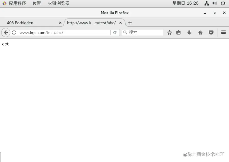 重启服务测试明显可以看出访问的是opt目录所以说正则匹配前缀的优先级要比后缀高。