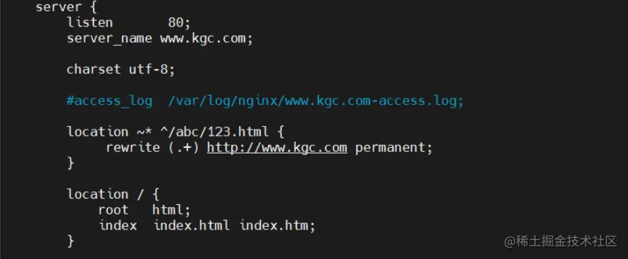 access_log /var/log/nginx/www.kgc.com-access.log; #日志修改