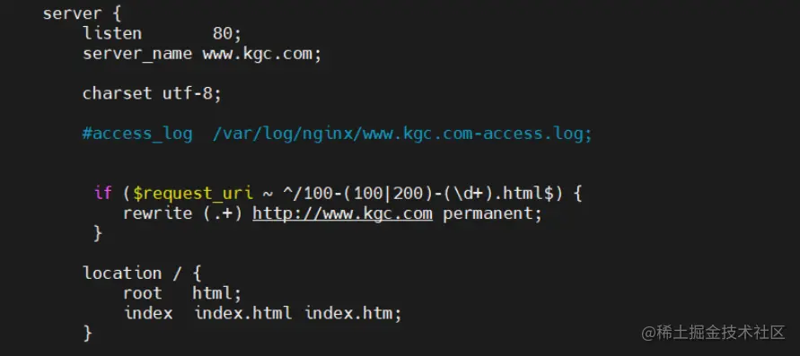 if ($host = 'www.kgc.com'){ #$host为rewrite全局变量,代表请求主机头字段或主机名