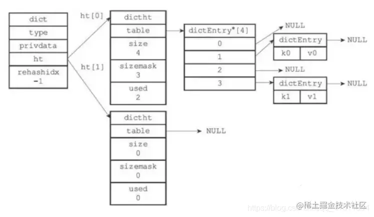 redis 的 hash 使用 hashTable 作为底层实现的话, 每个 hash 都会有两个hash表, 一个平时使用,