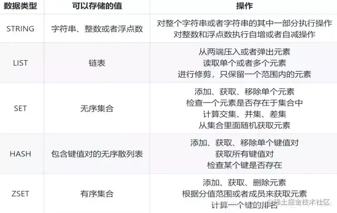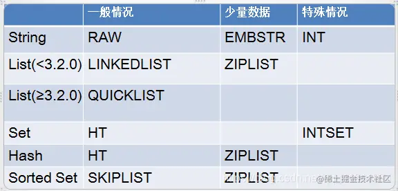 的支持 这样的好处是: 对5种基本类型设置不同是数据结构, 从而优化在不同场景下的使用效率