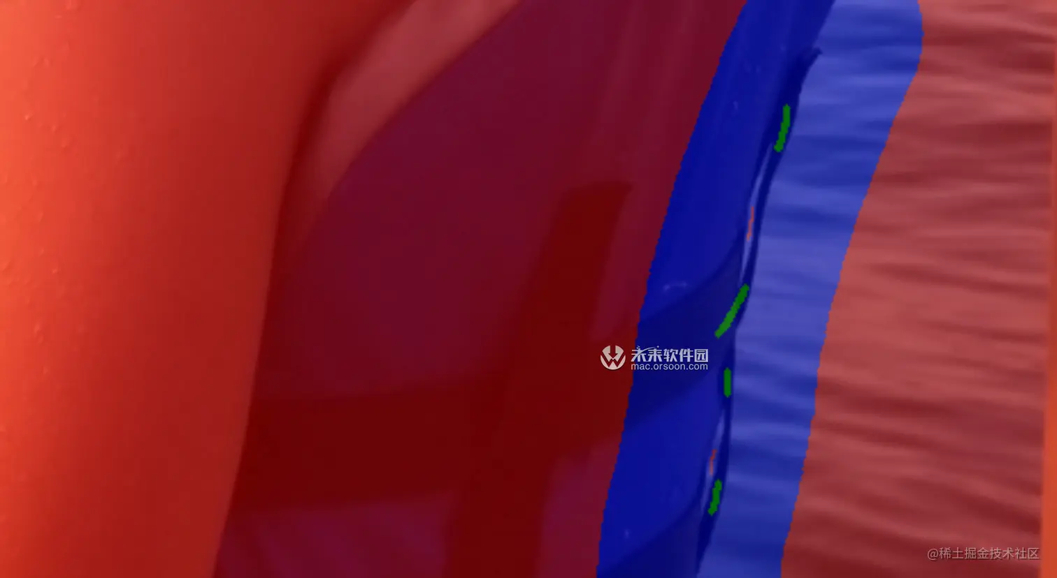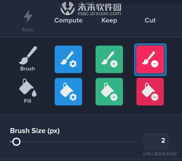 蓝色 -您要自动计算的区域应涂成蓝色。画笔工具是您在这里的朋友,周围的蓝色区域可以让您大方。您要确保要让应用自动计算的每个边缘都在蓝色的“计算”区域内。绘制蓝色区域后,可以绘制切口,并根据需要使颜色(红色和绿色)更靠近蒙版边缘。