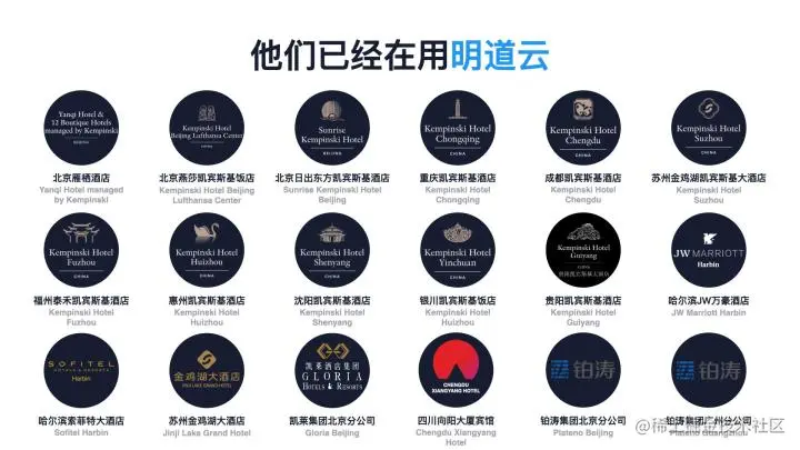 **明道从2015年开始,就与欧洲最古老的豪华酒店集团——凯宾斯基酒店合作,共同探索酒店内的无纸化办公方案。**至今,该合作已经拓展到国内大多数凯宾斯基酒店和全球其他知名酒店集团,如万豪、希尔顿、雅高和铂涛等,使用场景也从最初的酒店OA拓展到更多的数字化场景。