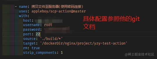 - appleboy/scp-action@master这个库上传文件可用密码也可用ssh链接(比上面个更方便)