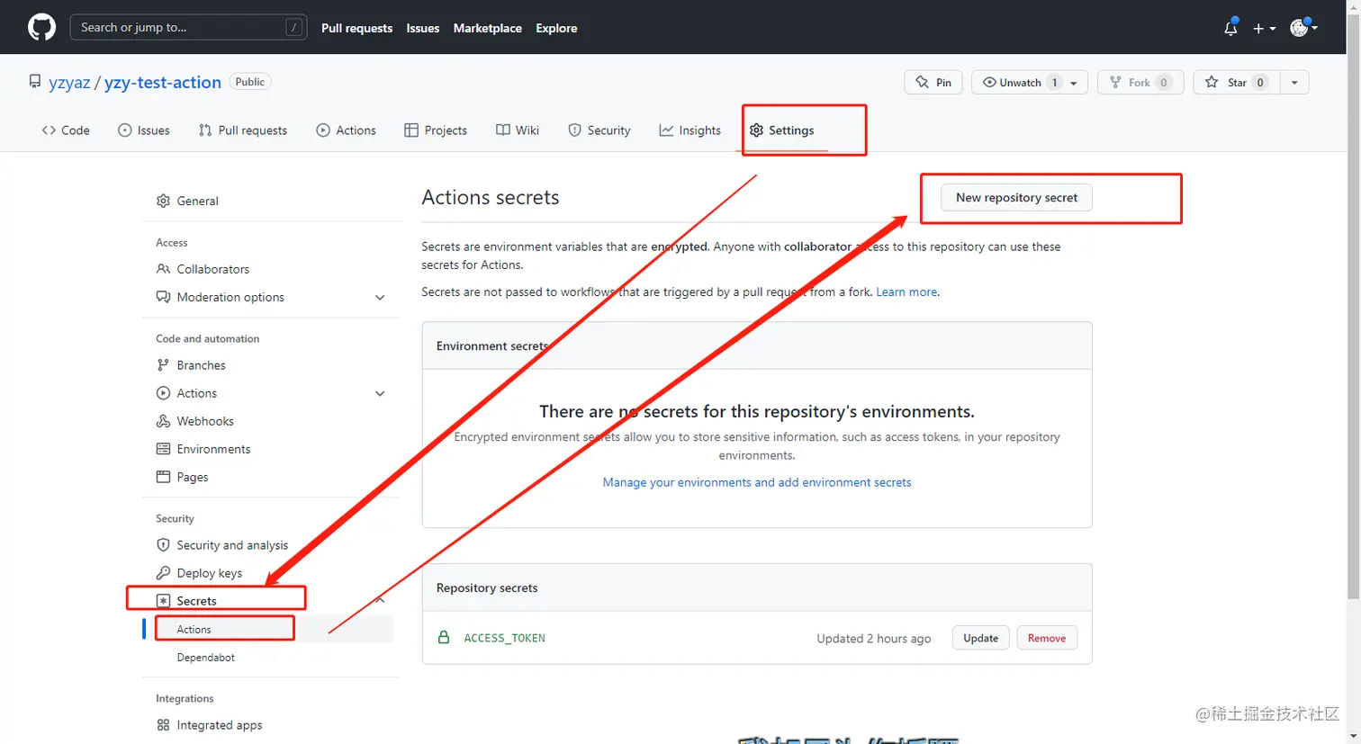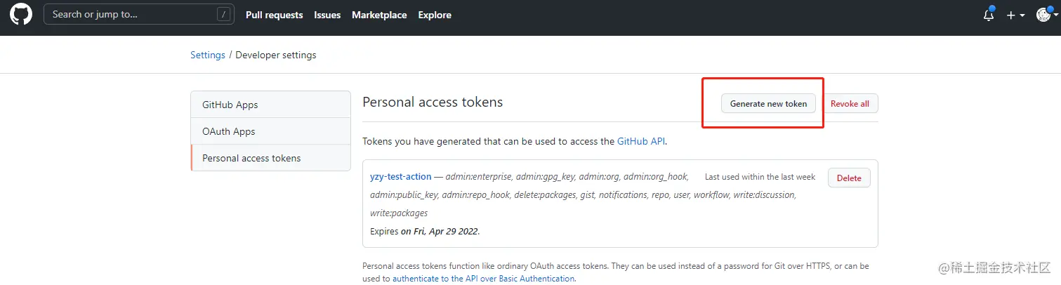 这样就可新建个token, 将其添加到上面的secrets库变量即可