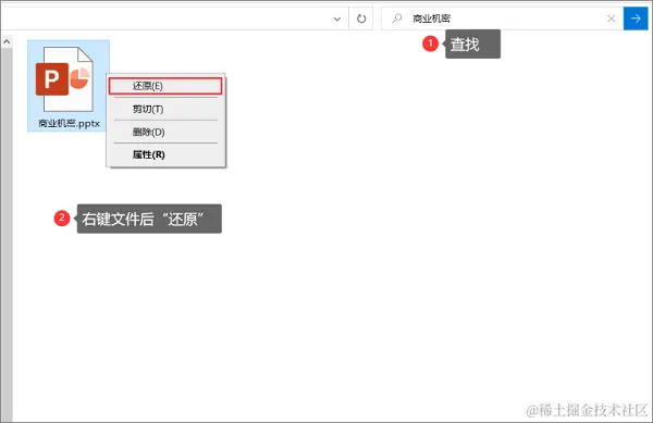 步骤3.在需要恢复的文件单击鼠标右键,点击“还原”即可成功恢复回文件删除之前的路径。