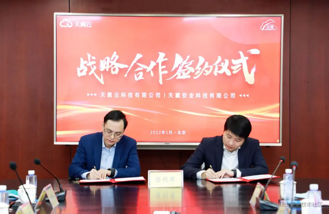 2022年1月29日,天翼云科技有限公司与天翼安全科技有限公司在北京正式签署战略合作协议。双方将在云网安全能力融合、产品研发和应用、一体化运营、市场宣传推广等领域开展全方位、多层次、宽领域的深度合作,推进安全云的不同维度能力建设。天翼云科技有限公司总经理胡志强、天翼安全科技有限公司总经理刘紫千等出席了本次签约仪式。