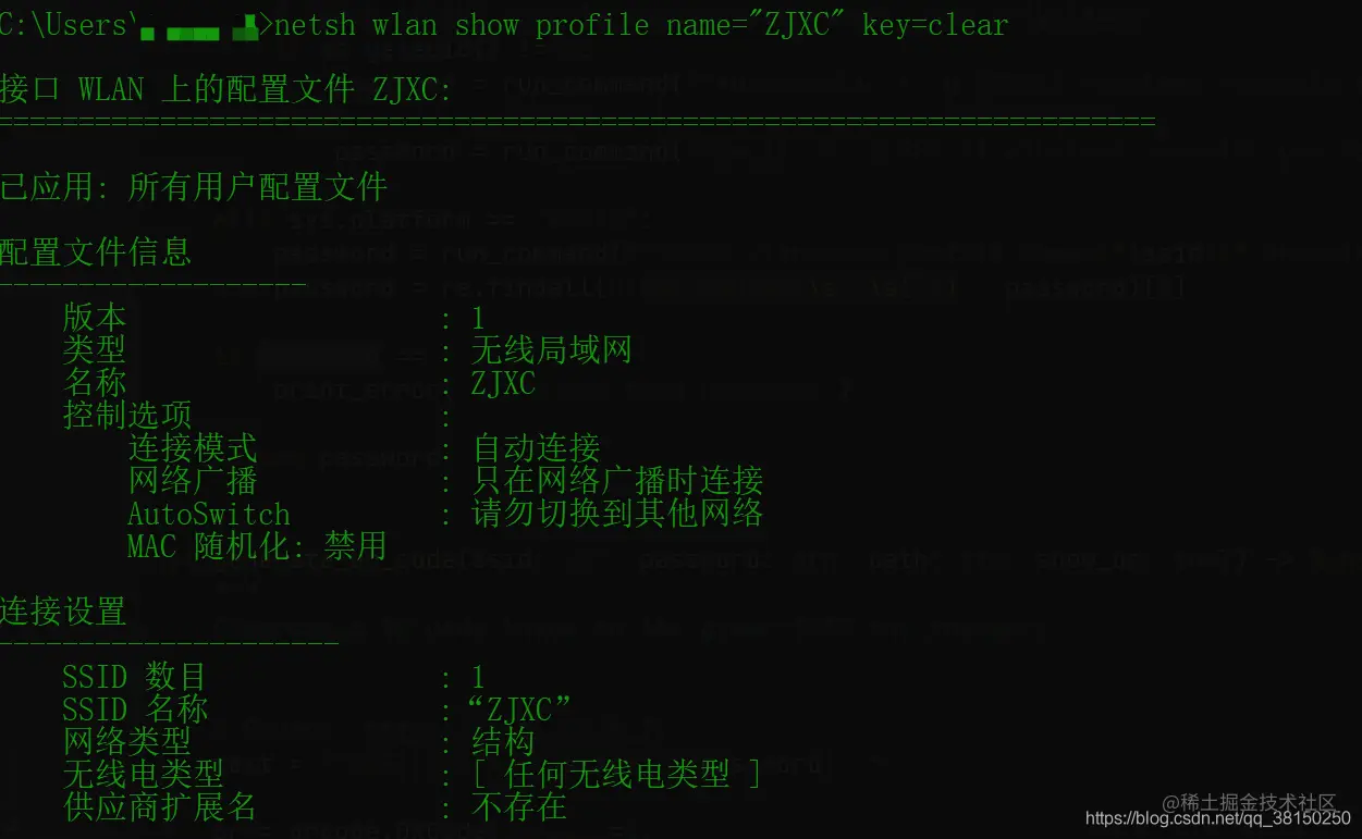 那如何获取当前连接的 wifi 的 SSID 呢,通过命令行的方式,以 windows 为例